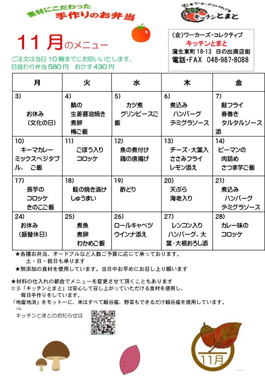 「ワーカーズ・コレクティブ キッチンとまと」は、可能な限り地場産の農作物を使用して、安全・安心なお弁当を届け、誰でもが高齢になっても働く場としていきたいと願っています。